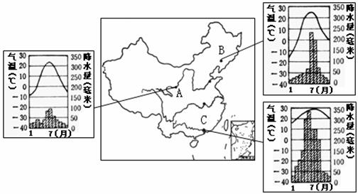 (3)在a、b、c三条河流中,含沙量最大的是 ,水量最丰富的是 ,汛期最长的是 。