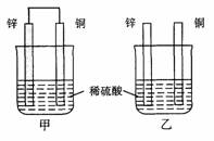16. 将纯锌片和纯铜片按图方式插入同浓度的稀硫酸中一段时间,以下叙述正确的是