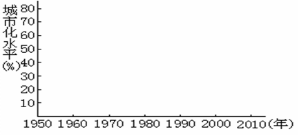(1)在下面空白图中画出发达国家、发展中国家的城市化水平增长折线图。(要求:发达国家用实线;发展中国家用虚线;点、线清晰准确)