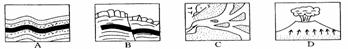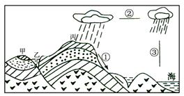 ⑵ 甲、乙、丙三处的地质构造分别为: