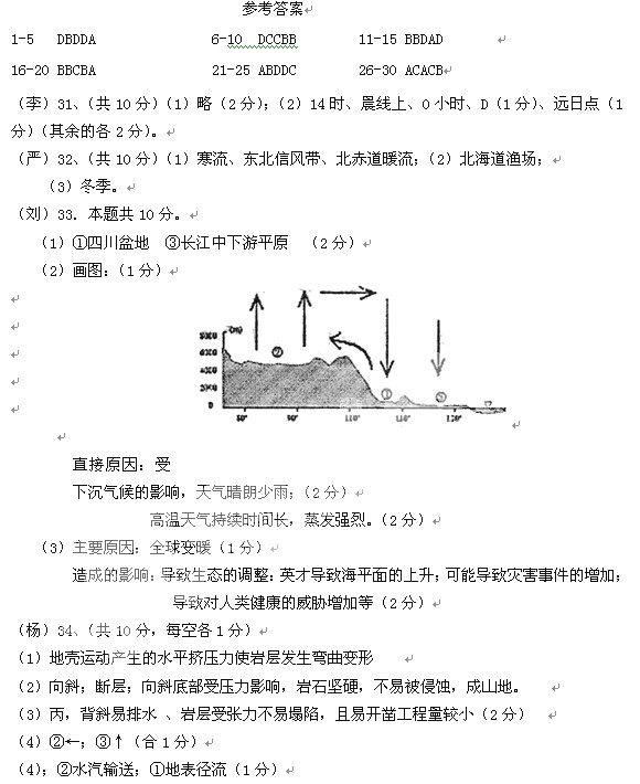 34、读某地东西地质剖面示意图,完成以下活动。(共10分)