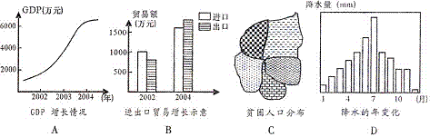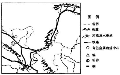 32.关于图中河流①的叙述,正确的是 A.以雨水补给为主 B.水量和含沙量大 C.流出源地后水量逐渐减少 D.水位季节变化和年际变化小 33.该地区有色金属工业发展的主要区位条件是 ①地势平坦 ②矿产丰富 ③气候适宜 ④水源充沛 ⑤交通便利 ⑥水能丰富 ⑦劳动力丰富且素质高 ⑧市场广阔 A.②③④ B.②⑦⑧ C.①④⑤ D.②⑤⑥ 下表(表2)表示台湾1993年和2003年两年部分出口产品的组成情况,据此回答34-36题。