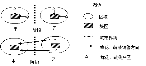 2.阶段Ⅱ鲜花和蔬菜产区的区位变化的主要原因是( )