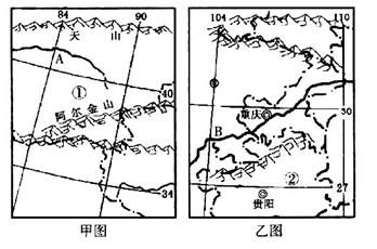 ⑴甲图中阿尔金山脉的走向为_______________________。