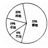 读我国某地区地貌类型比例表以及土地利用现状扇形图,回答6--9题。