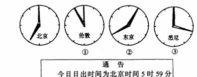 6.如果图中的时针,刚好表示180O经线,那么全球处在同一天,要过