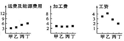 某企业集团计划新建有色金属冶炼厂。下图为甲、乙、丙、丁四地的成本分析图(单位相同),读图回答17-18题。