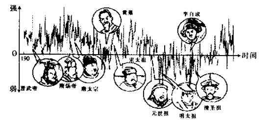 在甘肃陇南万象洞的一根石笋上,记录了中国过去1820年的气候变化史,更隐藏着中国古代王朝兴衰的密码。从公元530年到850年的这个时间段里,包含了隋朝重新统一中国和唐代的大部分时间。在此期间季风逐渐减弱,然后在公元860年突然降到最低点,随后虽又回升了一些,但保持低水平的稳定,之后又在910年到930年之间突然下降,而这个时间正好对应唐王朝衰落的时间。而随后的60年,季风急剧增强,在980年出现一个峰值。直到1020年,季风强度一直保持着高水平。研究者把从960年到1020年这段时期称为“宋代强季风期”。读公元190年以来季风强弱示意图及少数民族入主中原与气温的关联表,回答1l-12题。