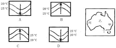 分析下面海洋表面等温线、洋流分布示意图和澳大利亚简图,完成5-6题