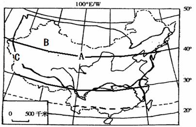 (4)中国的B处 和 美国的C处在发展农业上共有的气候优势条件有______________、______________、_______________等。