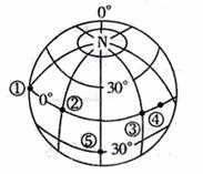 12.图5是一幅经纬网图,在ABCD四点中,最早沐浴到新世纪阳光的 ( )