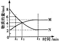 42.(10分)在一定温度下,4L密闭容器内存在反应,其中气体M、气体N的物质的量随时间变化的曲线如图所示: