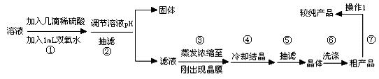 (14分)某研究性学习小组欲利用所学知识制备并提纯硫酸铜。所用原料为废旧铜材(含铁约2%,其它杂质忽略不计),过程如下: