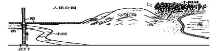 假定你是李华。你和几个朋友约定星期天在人民公园野餐(to have a picnic)。你们的英国朋友Peter也应邀参加。请你根据下面的示意图,给他写封短信,告诉他进公园后如何找到你们。