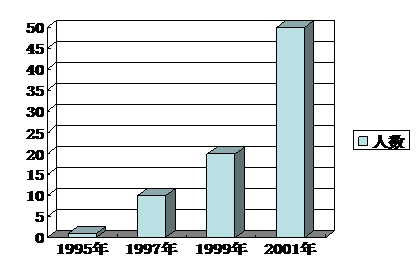 More and more people have mobile phones in recent years. In 1995, only one person in a hundred had a mobile phone in some city, as has shown in the above diagram. In 1997, 10 persons in a hundred had mobile phones. The number of the people who had mobile phones was ten times as many as in 1995. In 1999, there were 20 persons in a hundred who had mobile phones. In 2001, a half of the persons in a hundred had mobile phones.