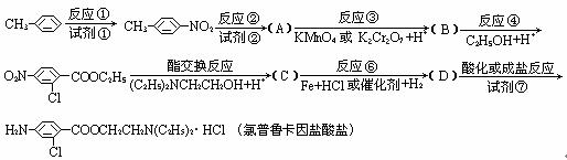22、(12分)氯普鲁卡因盐酸盐是一种局部麻醉剂,麻醉作用较快、较强,毒性较低,其合成路线如下: