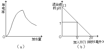 B.在V毫升0.1 mol/L NaOH溶液中逐渐加入0.1 mol/L的盐酸。(b图)