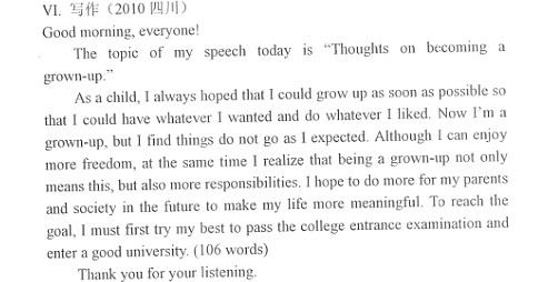 第二节:短文写作(共1题,满分25分)