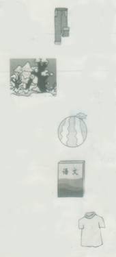 七、根据图意或中文意思,填空,每空一词。(5分)