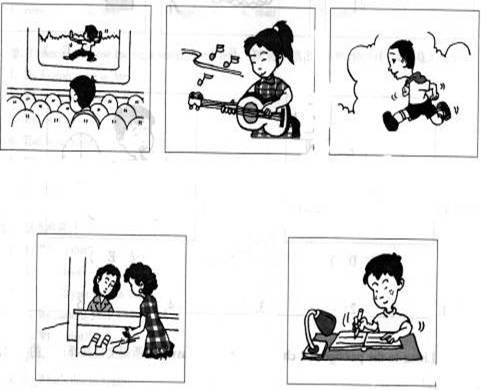 I. 听录音,选择与所听句子意思相符的图画,念两遍(5分)
