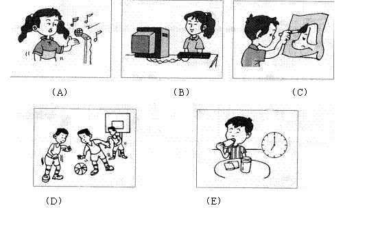 II. 听录音,选择与所听对话意思相符的图画,对话念两遍。(5分)