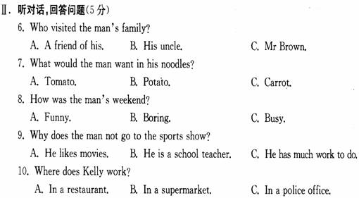 I.听下面五段小对话,选择正确的图片。 (5分)
