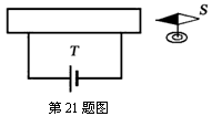 21.图中一个通电螺线管T旁边有一个小磁针,其稳定指向如图所示。试在图中画出螺线管的绕线方向。