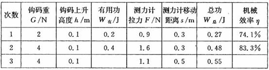 (2) 第3次实验中滑轮组所做的有用功是__________J,机械效率是___________%;