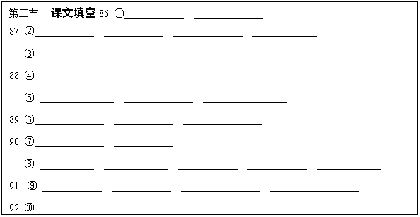 第二节:短文改错 My father speaks very well English, but he knows 76____________ little Japanese. He went to Tokyo in November 11 77____________ for a meeting. The meeting over a week later. 78____________ The next morning he went to a park and then do 79____________ some shopping. At noon, he was very much hungry. 80____________ He went to a nearest restaurant and sat down at 81____________ a table. A man came up to him and asked that he 82____________ needed. He said he liked noodles, chicken 83____________ and some fishes. He spoke to the man in English 84____________ and the man couldn’t understand him. My father had 85____________ to write the Chinese words for the food and got it. |