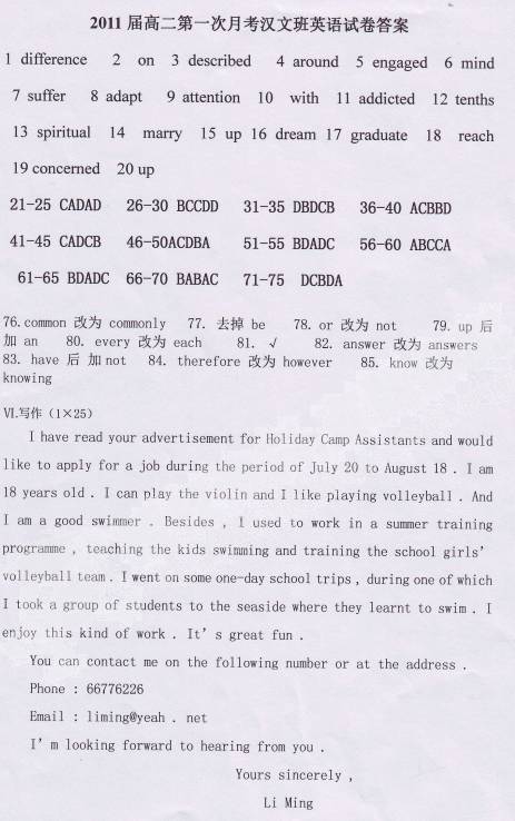 2.词数100左右。信的开头与结尾已为你写好,不计入词数。