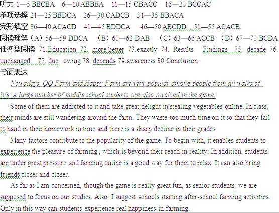 随着“开心农场”“QQ农场”等娱乐游戏风靡互联网,许多中学生也加入了偷菜的行列。请你根据下表的内容,用英语写一篇短文,并谈谈你个人的看法。