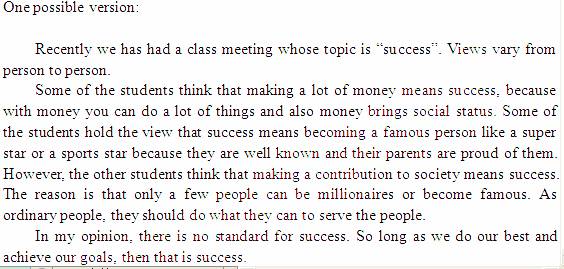 Recently we has had a class meeting whose topic is “success”. Views vary from person to person.