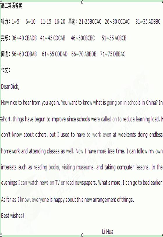 请你根据下表提供的信息,写一封回信,谈一谈减负给你的学习和生活带来的变化。
