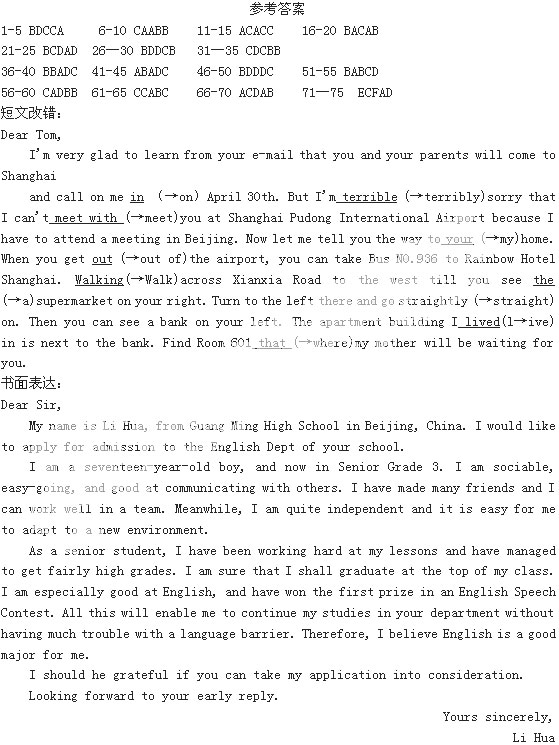 My name is Li Hua, from Guang Ming High School in Beijing, China. I would like to apply for admission to the English Dept of your school.