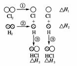 H2和Cl2反应生成HCl过程中的热效应可用右图表示,请回答下列问题: