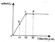 10.常温下,向0.1mol·L-1的硫酸溶液中逐滴加入物质的量浓度相同的氢氧化钡溶液,生成沉淀的量与加入氢氧化钡溶液的体积关系如图所示,a、b、c、d分别表示实验时不同阶段的溶液,下列有关说法中不正确的是( )