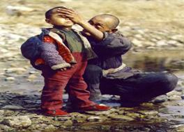 I was shocked by the picture at first sight. In the picture, by a small river, a little boy had tears on his lovely face and an old man, maybe his grandfather, was wiping his tears. From the clothes they are wearing we can see that they are poor. The boy was sad. Is it because his parents are working in a place far away from home and the boy is missing them day and night?