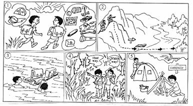 你和李明参加了一次野外生存训练。以下5幅图画表现了野外训练活动的过程,请根据图示写一篇英文日记。