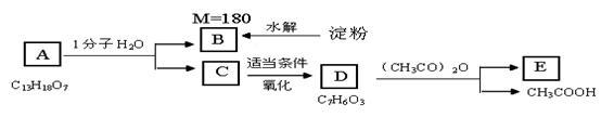 19(6分)某有机物A由C、H、O三种元素组成,一定条件下,A、B、C、D、E之间的转化关系如下: