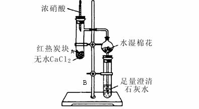 18、(15分)下图所示是进行木炭与浓硝酸反应,并检验生成的气体和反应的热效应的实验装置,它具有无污染,现象明显的特点。具支试管A中所盛固体下层是无水CaCl2(作载体不参加反应),上层是红热的木炭。实验时慢慢将浓硝酸滴到木炭上,反应即开始进行
