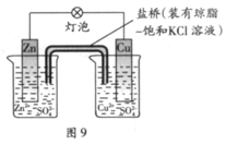 16.铜锌原电池(如图9)工作时,下列叙述正确的是( )