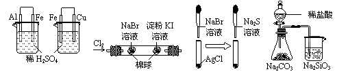 左烧杯中铁表面有气泡,右边烧杯中铜表面有气泡 |