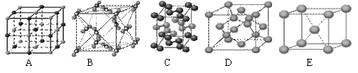 (2)一种离子晶体的晶胞如右图。其中阳离子A以