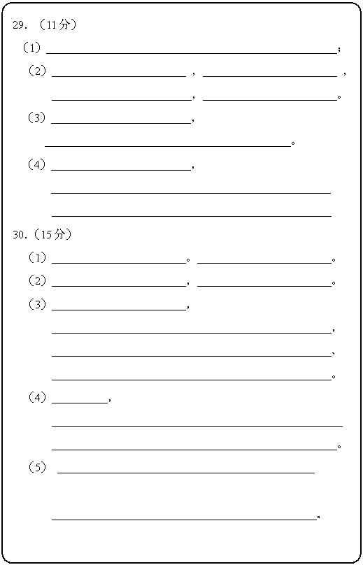 29.(11分)下表为元素周期表的一部分,a、b、c…为部分元素。回答下列问题: