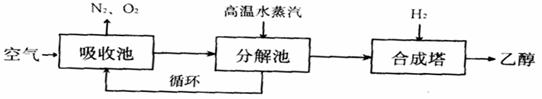 吸收池中盛有饱和碳酸钾溶液,把含有二氧化碳的空气吹入吸收池中,吸收池中反应液进入分解池后,向分解池中通入高温水蒸汽,把二氧化碳从溶液中提取出来,在合成塔中和氢气经化学反应使之变成可再生燃料乙醇。回答下列问题: