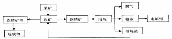 (I)铜陵有色金属集团公司是电解铜产量全国第一的大型企业。其冶炼工艺中铜、硫回收率达到97%、87%。下图表示其冶炼加工的流程: