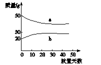 5(2005年上海)浓硫酸和2 mol·L-1的稀硫酸,在实验室中敞口放置。它们的质量和放置天数的关系如下图。分析a、b曲线变化的原因是()