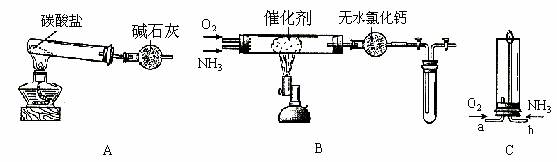 (4)将过量的氧气与A产生的氨气分别从a、b两管进气口通入到装置C中,并在b管上端点燃氨气:①两气体通入的顺序是先_____后______,其理由是_____________________________。