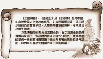 1、课室小剧场 选取三部小说中的个别情节,替学生分成演员、导演、剧务、编剧四组,把故事改编成剧本,在课室内表演或在特别节日作演出。