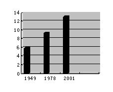 20、2005年1月,我国大陆总人口达到13亿。下面是三十余年来我国大陆人口变化情况: